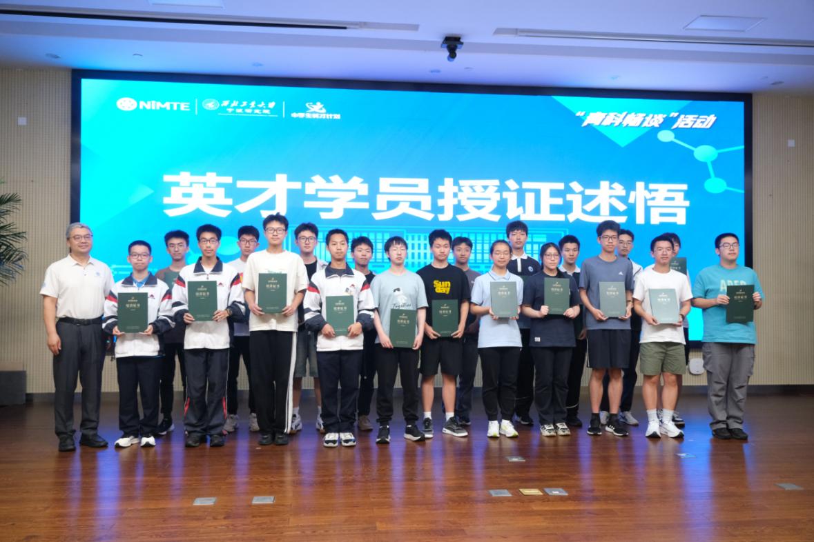 現場,4位來自第一期英才計劃的學員代表,物理學科的竺葉、生物學科的陳睿哲、化學學科的李墨妍、計算機學科的劉星宇,分別分享了他們在英才計劃中的學習經歷和成長感悟。從理論知識的系統學習,到實踐項目中的挑戰與突破,再到對科研精神的深刻領悟,學員們用親身經歷展現了在英才計劃中所獲得的成長與蛻變。同時,英才計劃導師代表還為堅持一年培養學習的第一期57位學員頒發了附有導師評語和簽名的培養證書,這意味著,由寧波市科協和寧波市教育局共同選拔的英才學員,順利結業。
